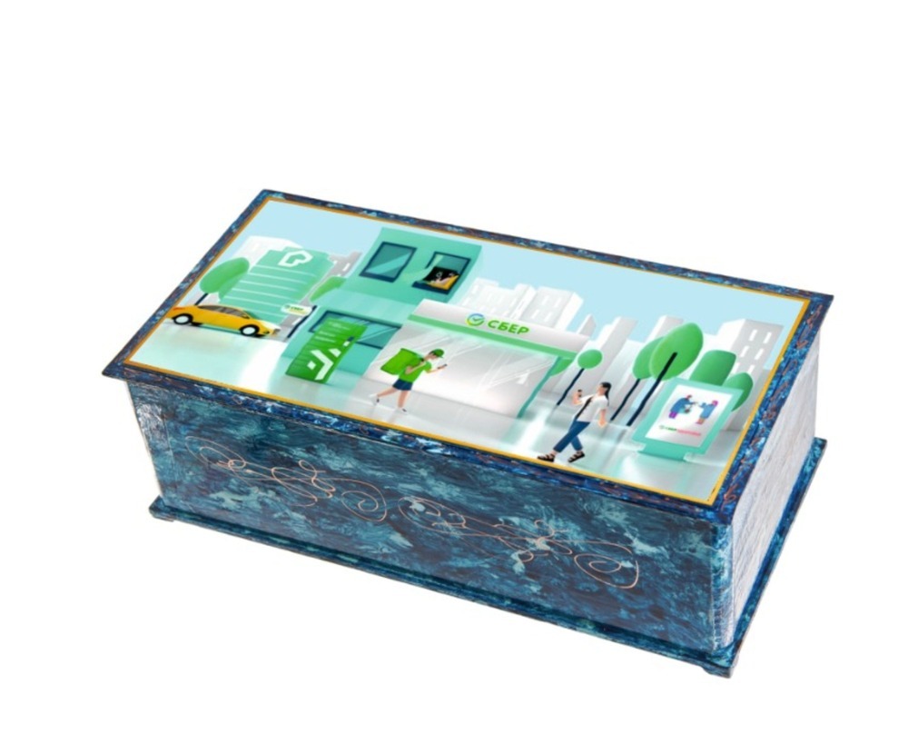 Шкатулка сине-голубая с логотипом — арт. ШДР-028